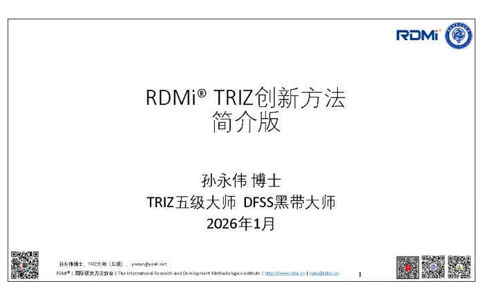 RDMi®发布现代TRIZ理论简介版:五级大师孙永伟博士亲制160页PPT全面解锁创新方法