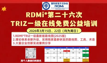 RDMi®第27期免费TRIZ一级公益培训工作日紧凑班 (26年3月11-13日)
