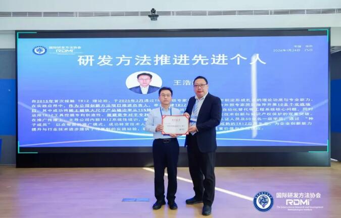 2026年1月24日,第五届研发方法年会在深圳恒裕前海金融中心隆重召开。在开幕式上,RDMi®(国际研发方法协会)主席、TRIZ五级大师、DFSS黑带大师,对外经贸大学创新工程实验室副主任孙永伟博士代表RDMi®,向来自北京中科三环高技术股份有限公司的王浩颉总工程师颁发了“研发方法推进先进个人”证书,以表彰其在企业内部推进创新方法过程中取得的开创性成果。 &...
