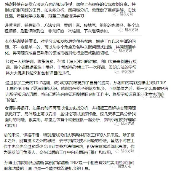 ② 高质量:现场收看顶级五级TRIZ大师孙永伟博士的教学现场录制视频,所学内容与线下五天课程内容相同,培训过程中还将安排TRIZ专家在线复习、总结、答疑、辅导;