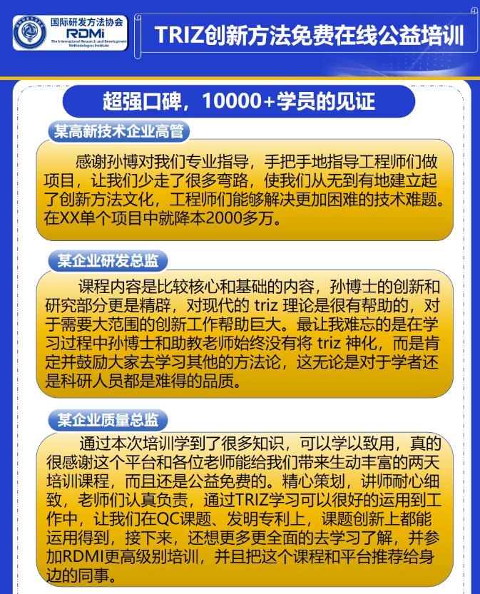 RDMI®还将开展其他能够大幅提高研发效率的方法论培训,敬请关注。