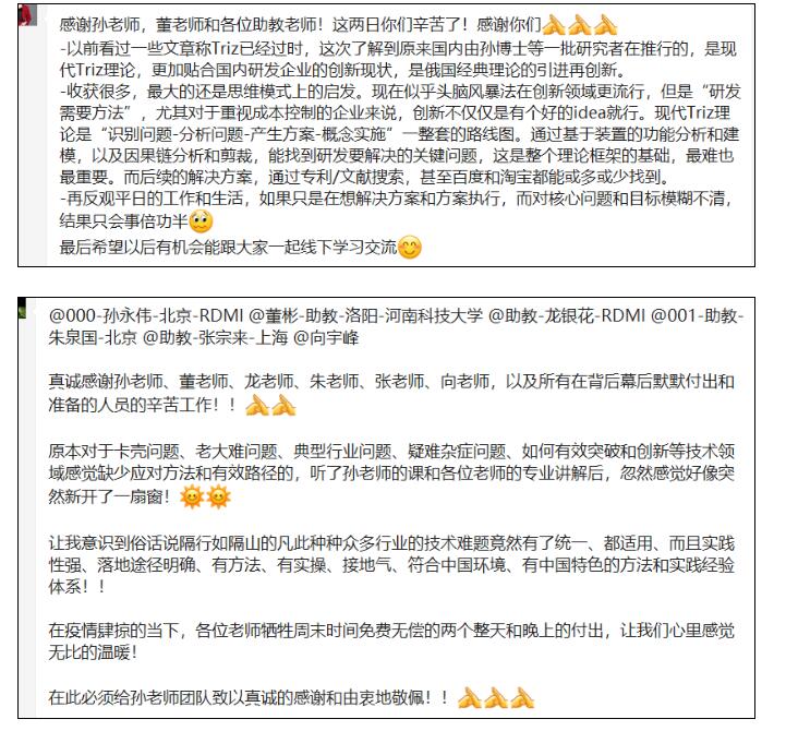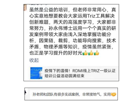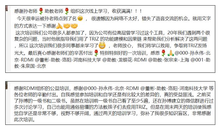 附:2022年3月初RDMI公益TRIZ一级培训部分反馈: