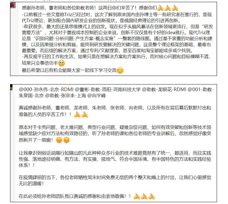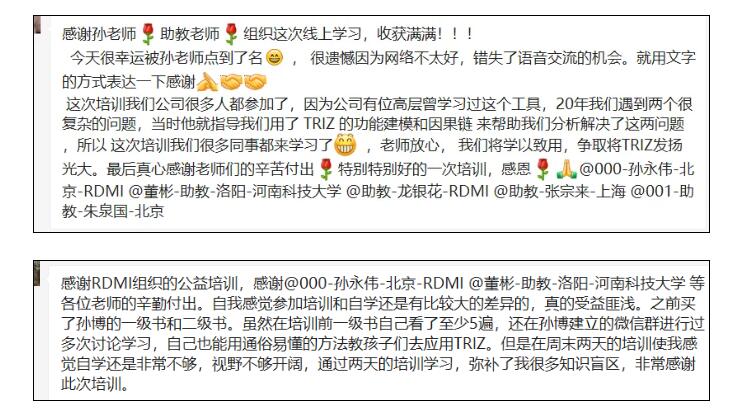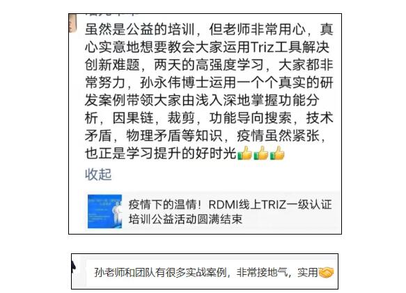 附:2022年3月初RDMI公益TRIZ一级培训部分反馈:
