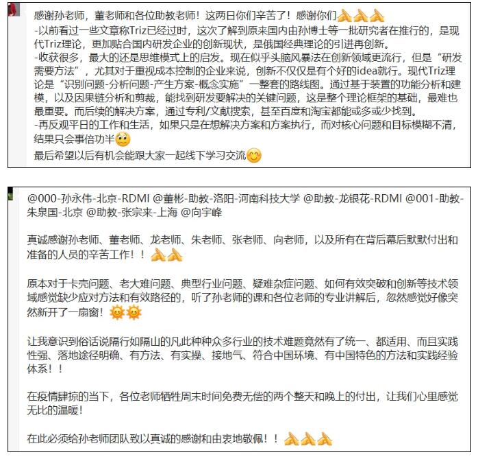 附:2022年3月初RDMI公益TRIZ一级培训部分反馈: